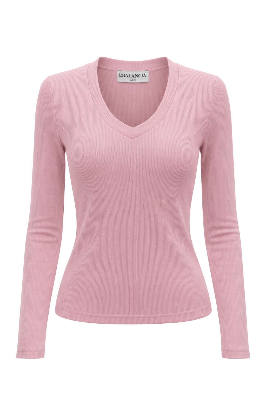 Dusty Rose – Klasyka gładkiej bawełny i kobiecy dekolt V-neck
