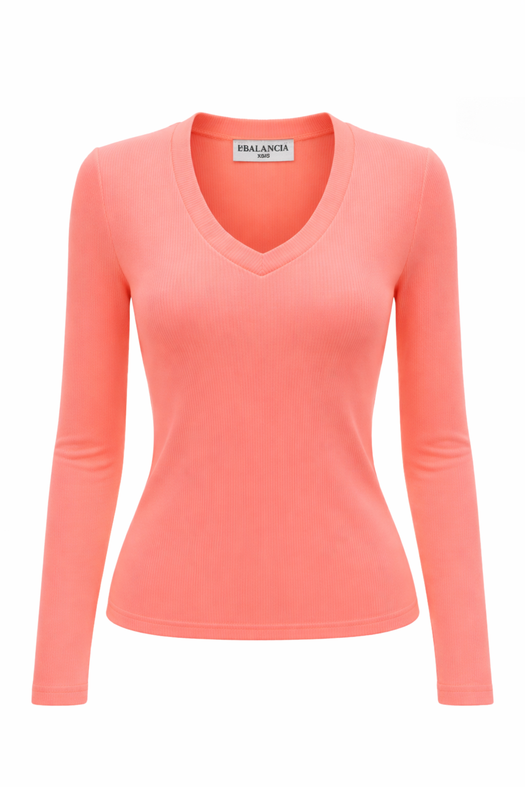 Salmon Pink – Klasyka gładkiej bawełny i kobiecy dekolt V-neck