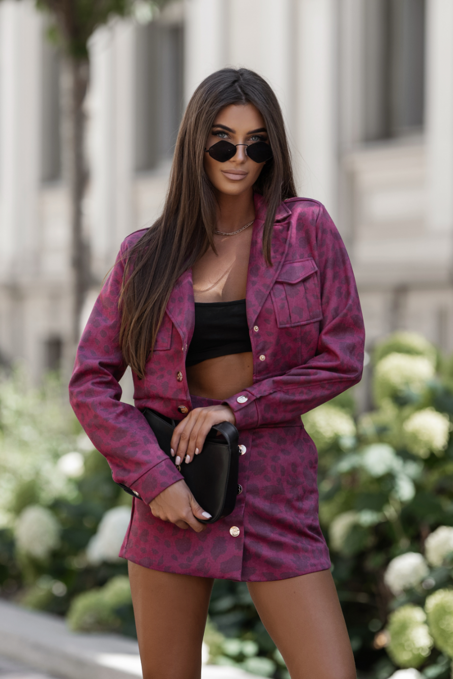 Komplet BLISS Panterka bordo to elegancka propozycja, która łączy w sobie wygodę i nowoczesny styl. Stworzony z myślą o kobietach, które cenią sobie zarówno modę, jak i komfort noszenia. W skład kompletu wchodzi krótka kurtka oraz spódniczko-spodenki, które doskonale sprawdzą się w różnych stylizacjach, zarówno na co dzień, jak i na szczególne okazje.