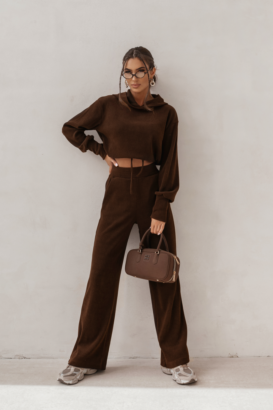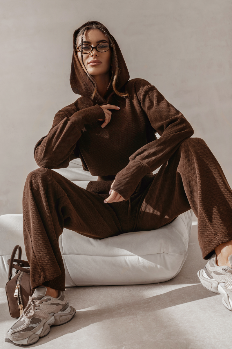 Stylowa Wszechstronność: HOPE w kolorze brązowym to zestaw, który równie dobrze czuje się w domowym zaciszu, jak i podczas weekendowego wyjazdu czy spaceru po mieście. To moda, która podąża za Twoim tempem życia.