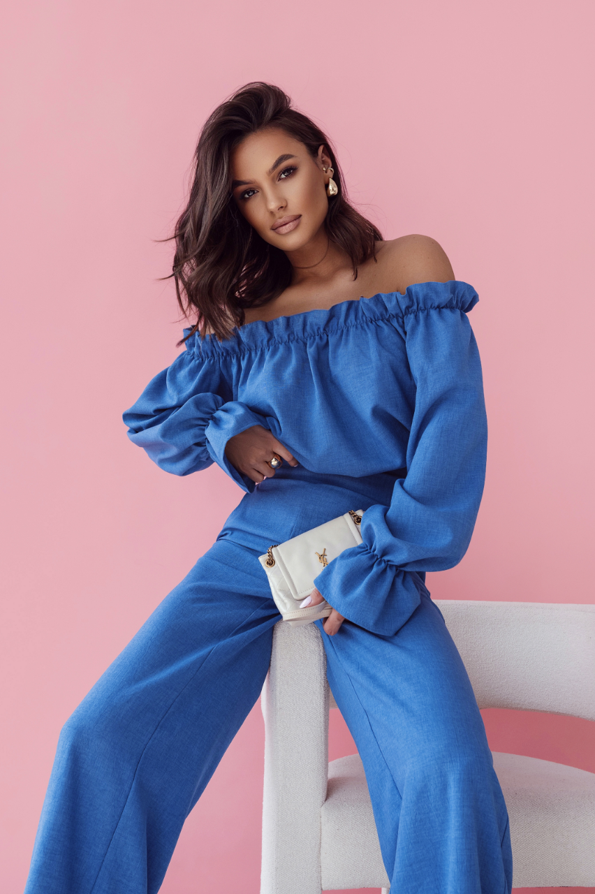 Komplet MIA Noir Elegance to mistrz uniwersalności. Aby uzyskać efekt „High-End Minimal”, zestaw go ze złotymi sandałkami i masywną, złotą biżuterią – czerń i złoto to duet, który zawsze emanuje luksusem. Każdy element kompletu to osobny filar Twoich stylizacji: czarne spodnie palazzo stworzą idealny zestaw z białym topem premium, a lniana bluzka carmen nada szyku Twoim ulubionym jeansom. Ten model rewelacyjnie wygląda z gładko upiętymi włosami i czerwonymi paznokciami, tworząc look pełen klasy i nowoczesnego sznytu.