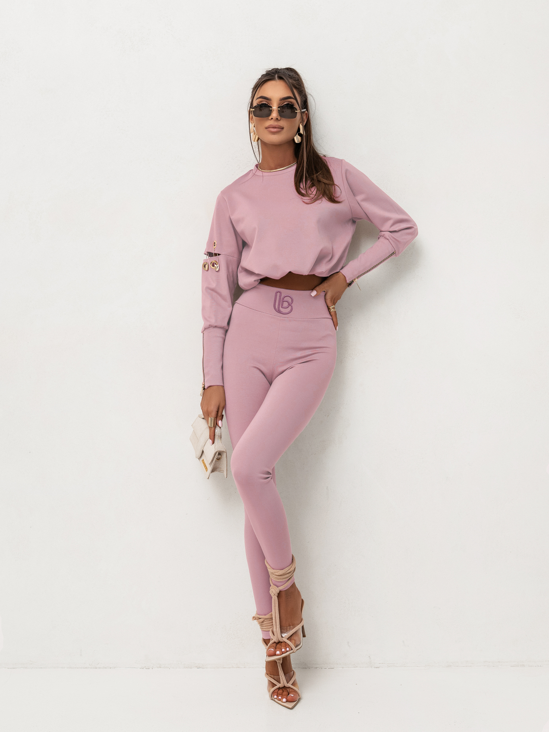 Różowy komplet AGRAFKA to baza do stworzenia niezwykle kobiecego Look of the day. Na szybką kawę w mieście zestaw go z białymi sneakersami i beżowym, wełnianym kardiganem – to kwintesencja miejskiego szyku. Chcesz nadać mu bardziej wyjściowego charakteru? Załóż do niego dopasowaną marynarkę w kolorze ecru i eleganckie botki. Motyw agrafki pięknie komponuje się ze srebrną biżuterią, która subtelnie nawiąże do metalicznego detalu na bluzie. Jeśli szukasz samej bazy, sprawdź też nasze legginsy AVI Black, które z różową bluzą stworzą idealny, sportowy kontrast.