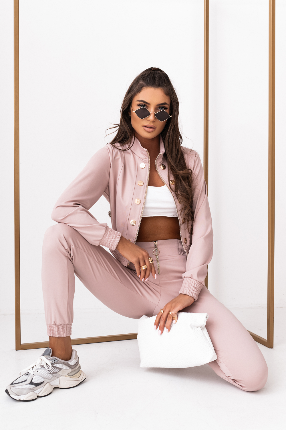 • Kobiecy Krój: Bluza typu crop idealnie eksponuje talię, a dopasowane spodnie z wysokim stanem optycznie wydłużają nogi, tworząc sylwetkę marzeń.