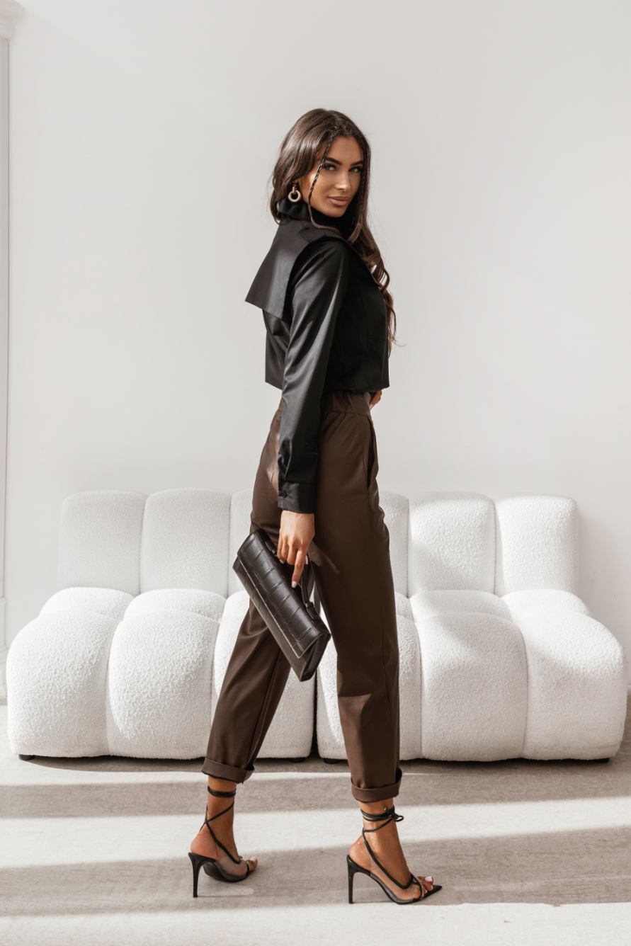Koszula MILO Black to prawdziwy kameleon. Stwórz drapieżny, a zarazem elegancki total black look, łącząc ją z czarnymi spodniami z ekoskóry i botkami na obcasie. Na co dzień postaw na kontrast – zestaw ją z jasnymi jeansami i złotą biżuterią, która pięknie odbije się na tle ciemnego materiału. MILO świetnie sprawdzi się też rozpięta, narzucona na biały t-shirt lub jedwabny top, tworząc modną, warstwową stylizację.