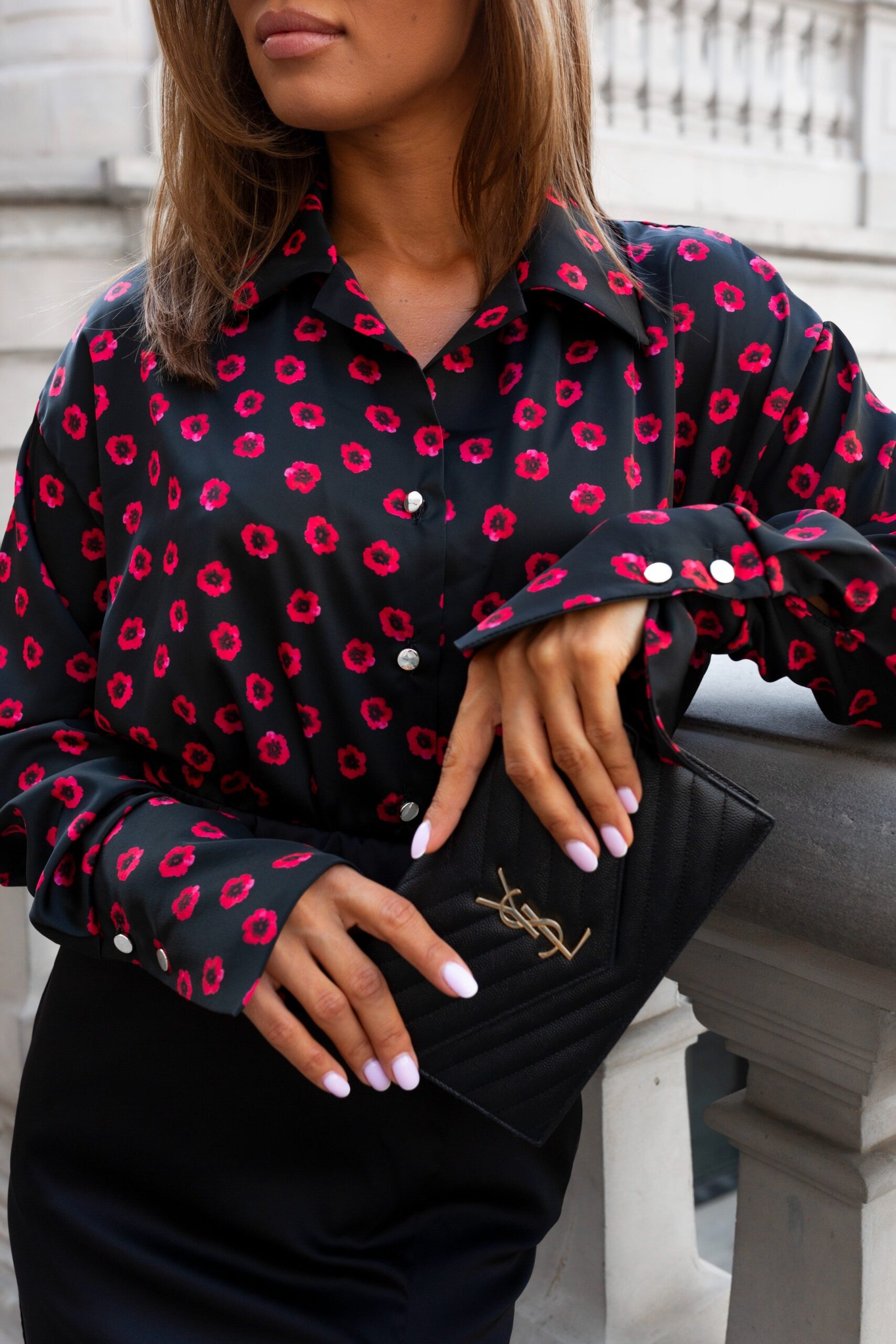 Odkryj magię wzoru Black Meadow – połączenie klasycznej, głębokiej czerni z delikatnym motywem polnych kwiatów. Koszula satynowa MADDIE w tym wydaniu to kwintesencja kobiecości z nutką tajemniczości. Satynowy blask wiskozy sprawia, że kwiatowy wzór nabiera szlachetności, tworząc idealną bazę zarówno do biura, jak i na wieczorne wyjście.
