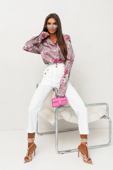 Koszula ma swobodny krój (oversize), który pięknie opływa sylwetkę: