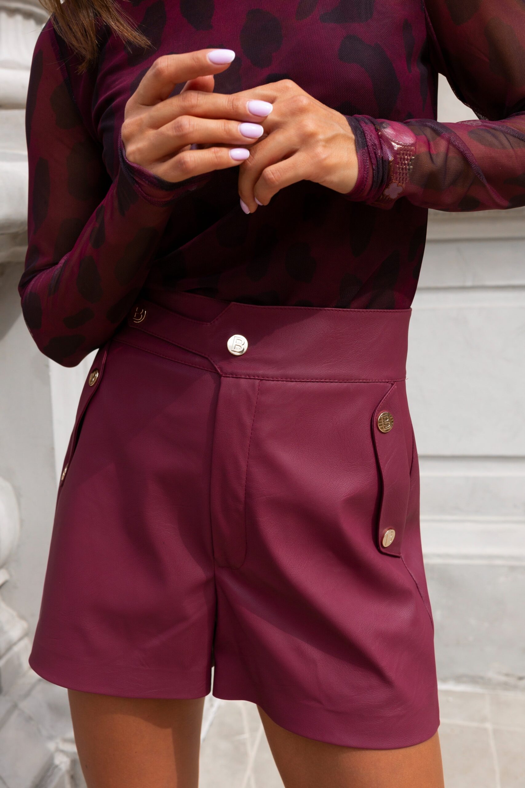 Krótkie skórzane spodenki ze złotymi napami- Bordo