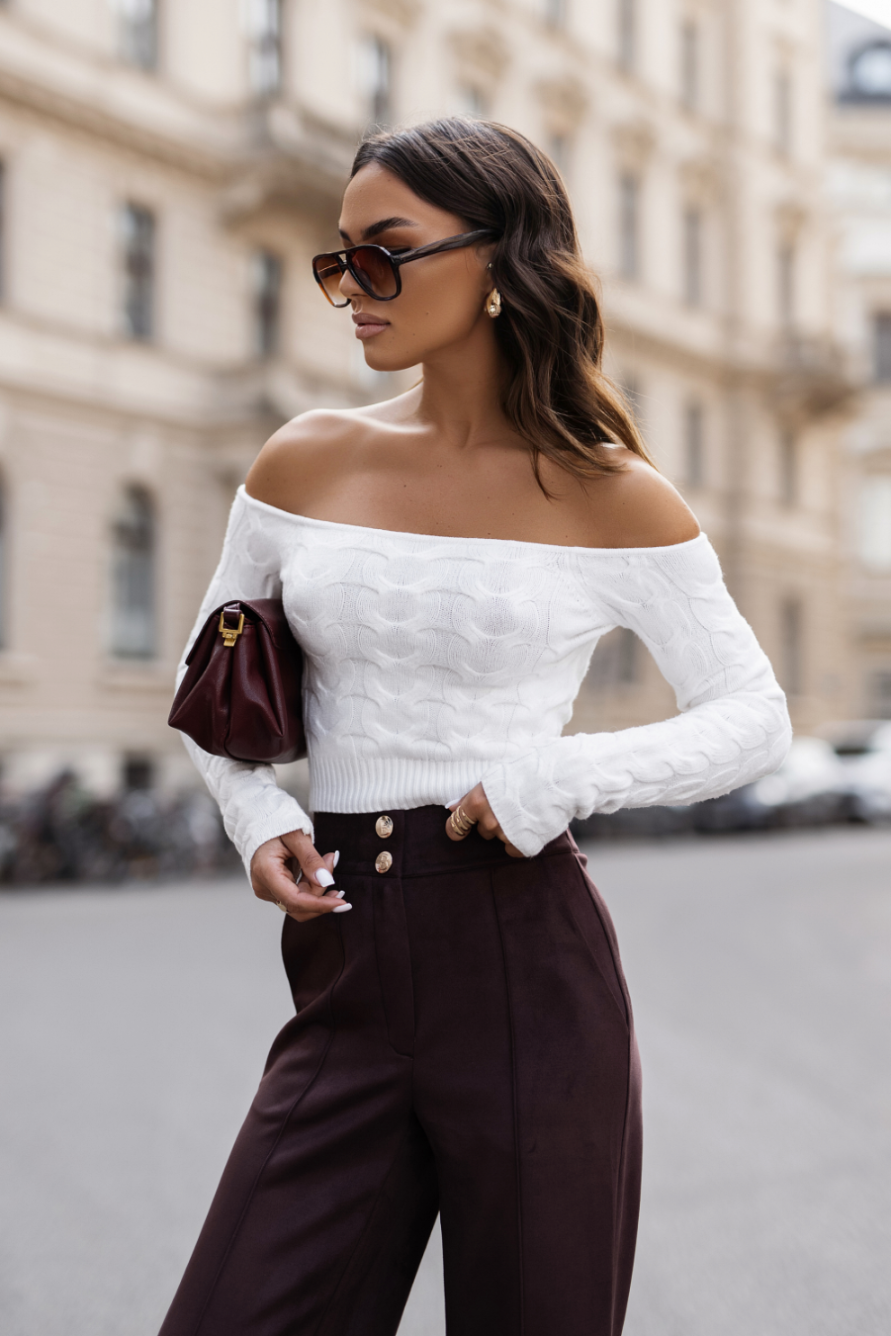 Spodnie FERN charakteryzują się nie tylko modnym krojem, ale również uniwersalnym brązowym kolorem, co sprawia, że są bardzo łatwe do zestawienia z różnymi elementami garderoby. Doskonale komponują się zarówno z klasycznymi bluzkami, jak i bardziej casualowymi t-shirtami. Dzięki temu można je nosić zarówno w biurze, jak i na spotkaniach ze znajomymi czy podczas casualowych wyjść.