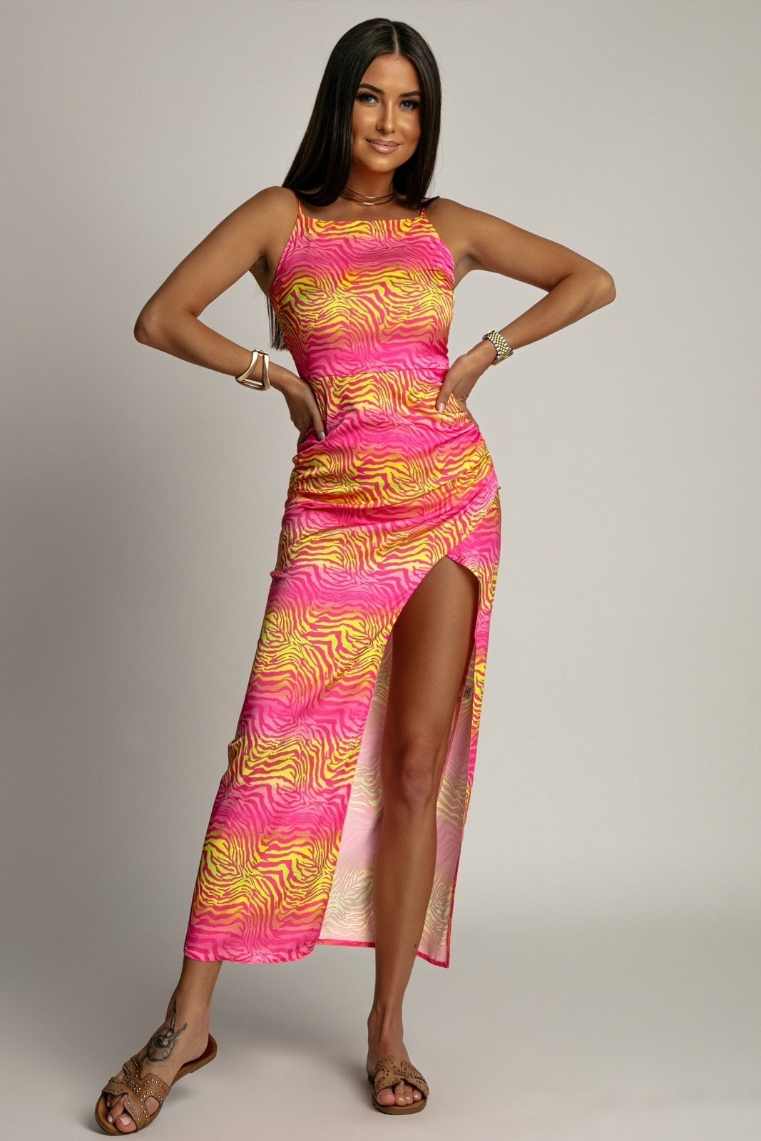Sukienka satynowa – Różowa Zebra